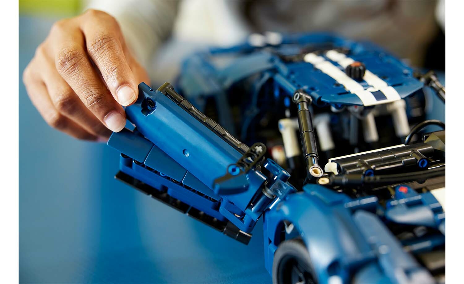 • 發動你的引擎-此 Ford GT 模型盒組具備靈感來自實車的細節,如有可動活塞的 V6 引擎、所有車輪的獨立懸吊系統,以及前軸轉向系統