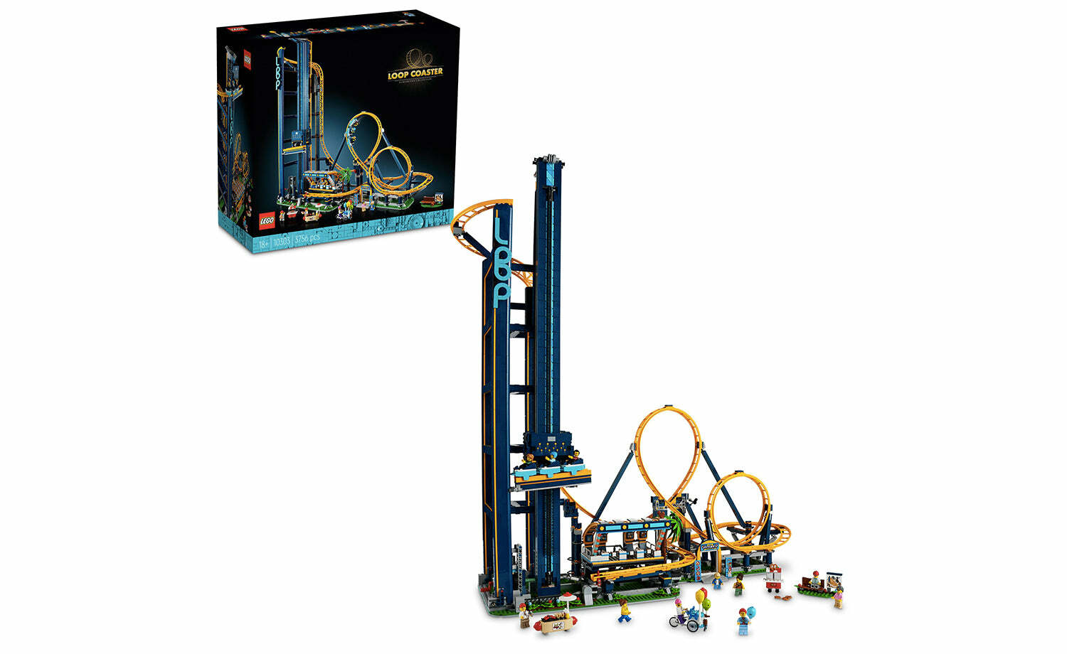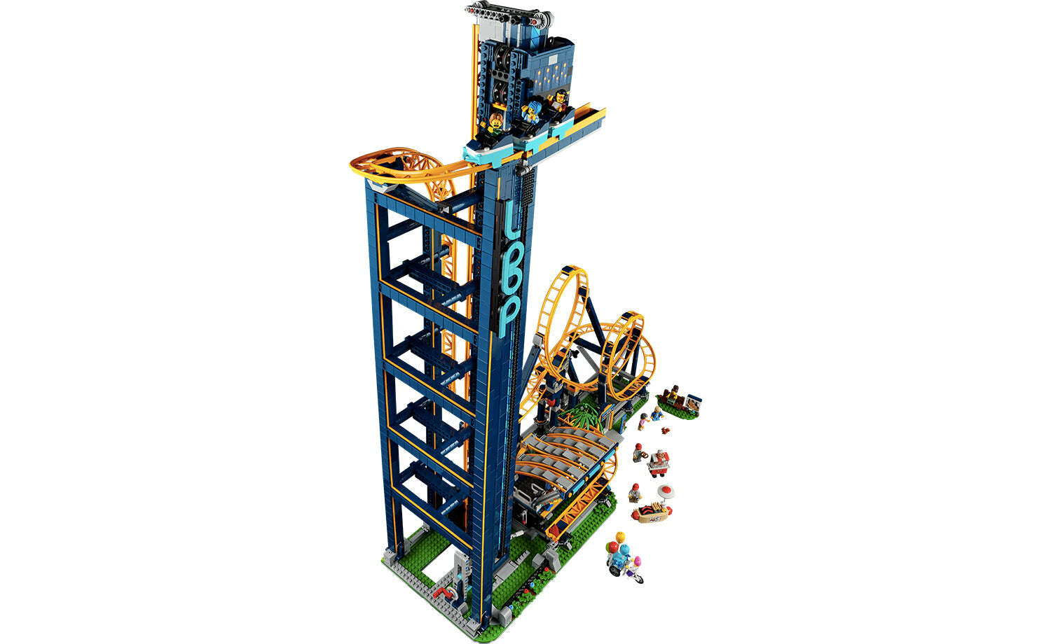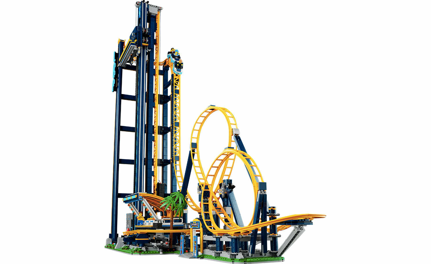 這座重力驅動的雲霄飛車內含 1 列雲霄飛車,以及 1 座帶有可開啟的驗票閘門與雲霄飛車控制面板的乘車站。壓下護桿將乘客固定在車內,接著放開煞車,將車廂送到升降機底端。啟動升降機,就能享受雲霄飛車在環道與過彎上呼嘯而過的旅程。可用另外販售的 LEGO Powered Up 將雲霄飛車的升降機升級為電動版。配件包含 1 張附帶地圖的公園長椅、氣球推車、蝴蝶餅推車、熱狗攤與身高表。