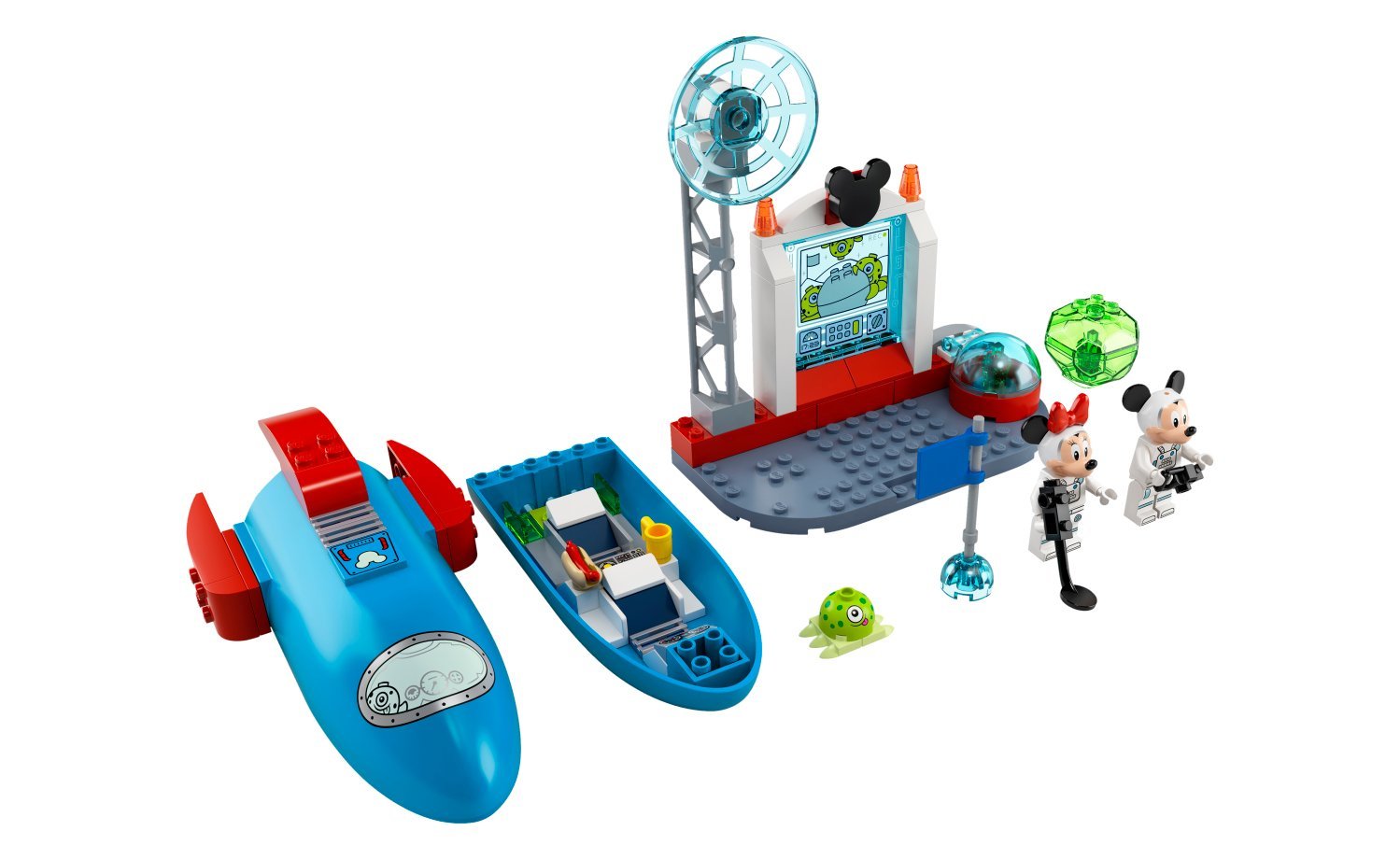 • 此盒組適合用來學習拼砌。火箭與太空站包含入門款積木,便於拼砌,有更多時間可以玩,此外還有 2 隻人偶與 1 個獨家米奇剪影積木!