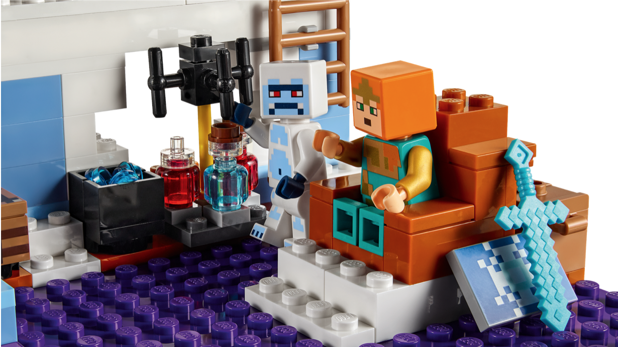 Minecraft 玩家可用這款玩法多變的盒組探索無盡的拼砌、遊戲與展示可能性。角色包括皇家戰士、雪怪與一群敵對的骷髏和殭屍,準備好帶著各式酷炫武器攻擊玩具城堡。動手玩的特色包括城垛上的發射器,可對前進的敵人射箭。裡面有多種忠實還原的配件,像是調製藥水用的鍋釜、裝滿珍貴物資的寶箱,以及出自 Minecraft 遊戲的經典工作台。冒險結束後,建築物便於重新配置,激發豐富的全新 Minecraft 創意樂趣。