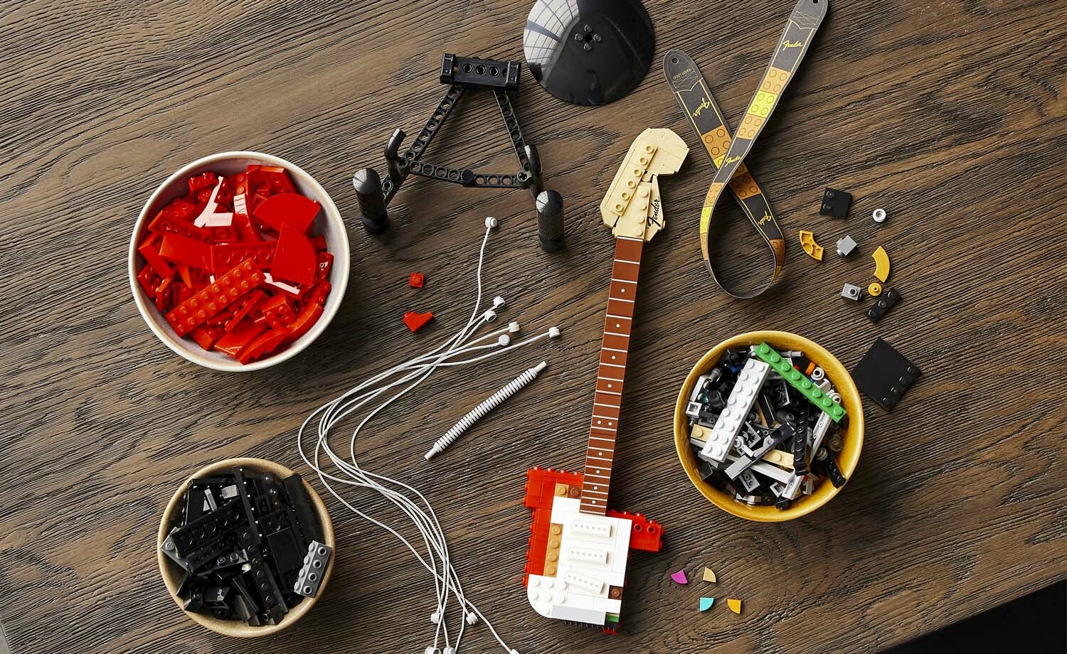 此拼砌組合出自一系列給大人的樂高盒組,是給吉他玩家、Fender 迷、音樂愛好者與忠實樂高拼砌者的首選送禮點子。