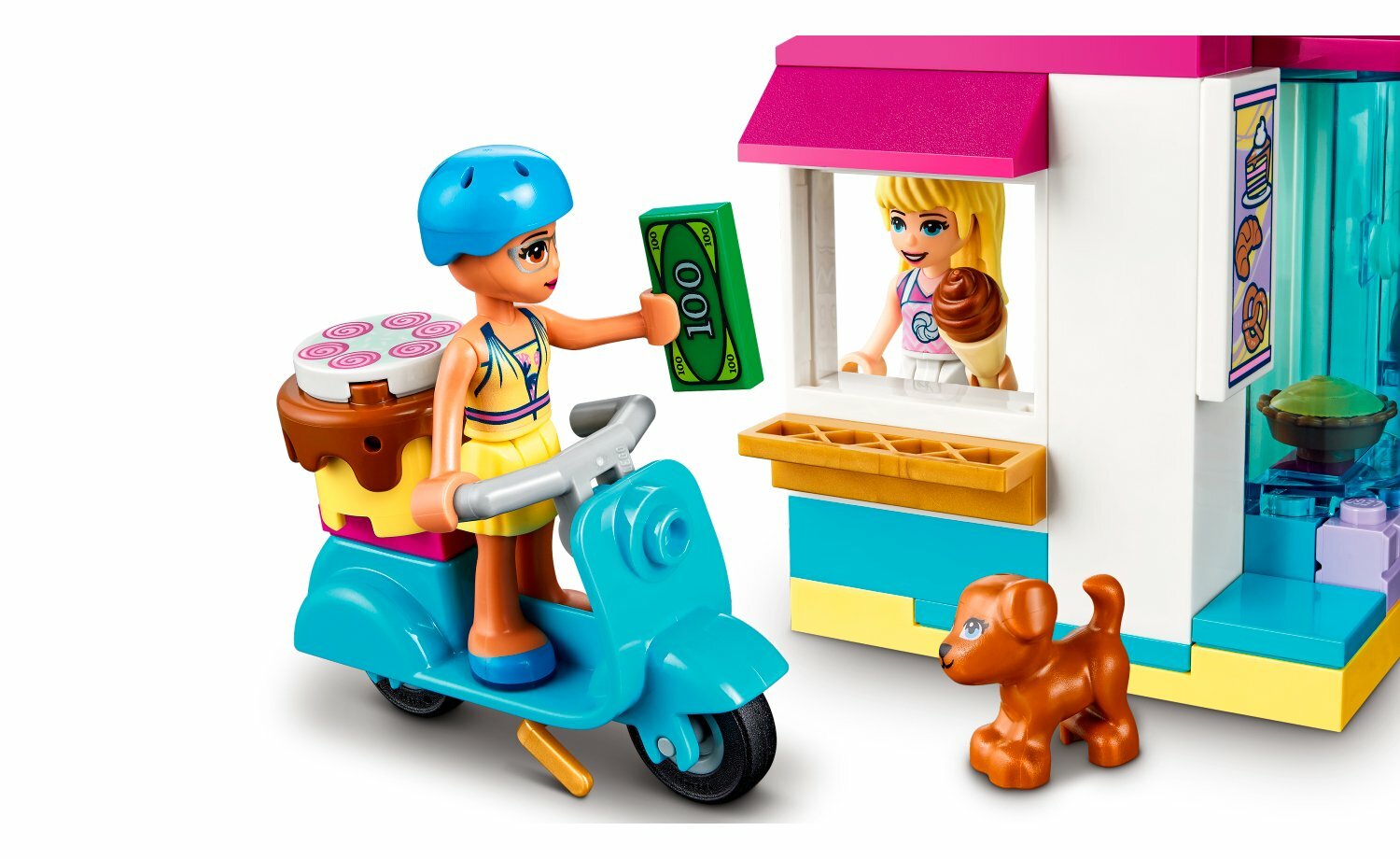 用這款心湖城麵包店(41440)兒童禮品幫助孩子培養拼砌技巧。這套簡單的小型商店盒組讓孩子跟 LEGO® Friends 斯蒂芬妮和奧麗薇亞一起陳列可口點心,並與她們的好友分享。