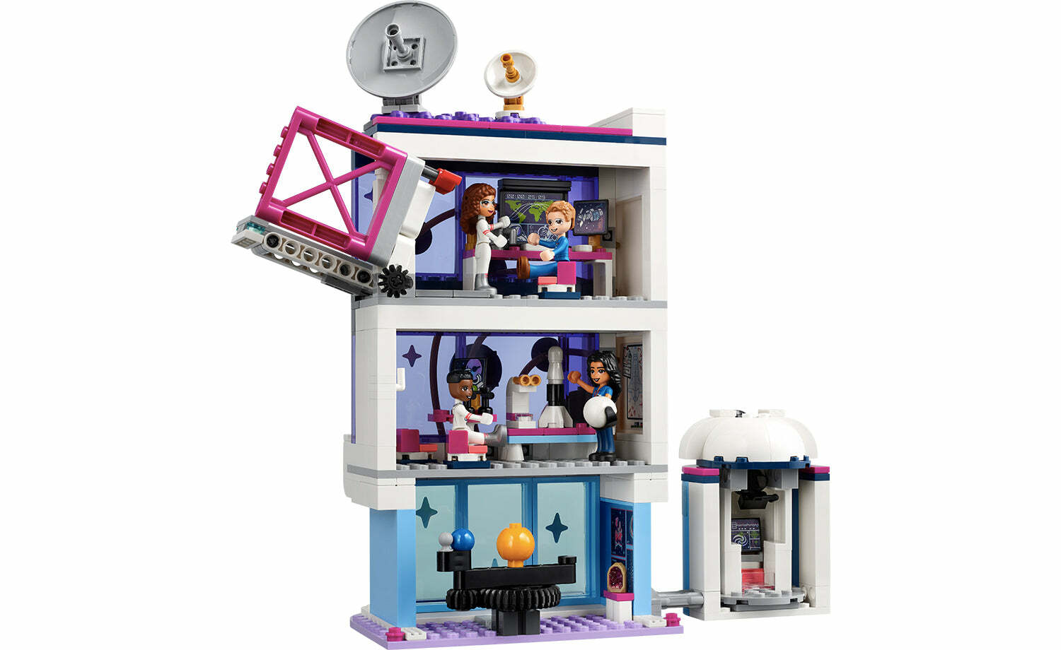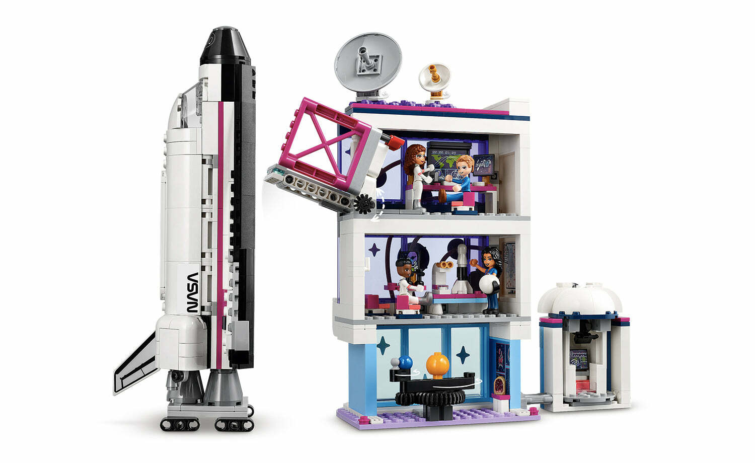 用奧麗薇亞的太空學院(41713)將小小太空人對太空的愛送上平流層。8 歲以上孩子可跟 LEGO® Friends 角色一起為太空冒險進行訓練。此盒組充滿許多寫實特色,包括太空梭上的推進器,以及虛擬實境模擬器。除了遊戲之外,還有更多有趣的學習機會-學院裡的所有形象化描述皆符合科學事實,教室的白板上寫著真實的太空飛行方程式。