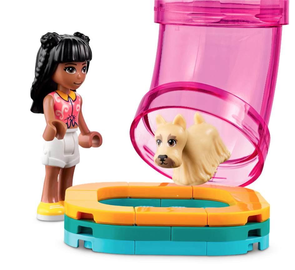 孩子一定會喜愛探索這款 LEGO® Friends 禮品的所有特色,就從前門開始-一個樂高娃娃專用門和一個動物專用門。他們會開心教他們的狗狗表演新把戲、帶牠穿越敏捷訓練場,並教牠溜滑板。寵物可以溜下其中一座色彩繽紛的溜滑梯,進入游泳池,當作獎勵。