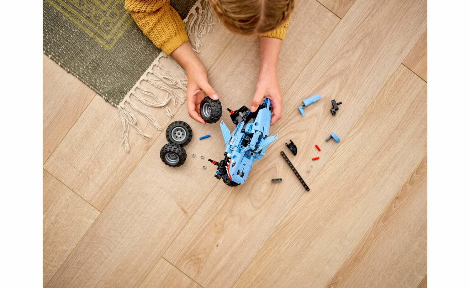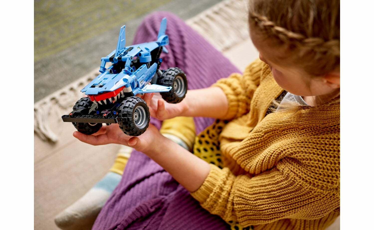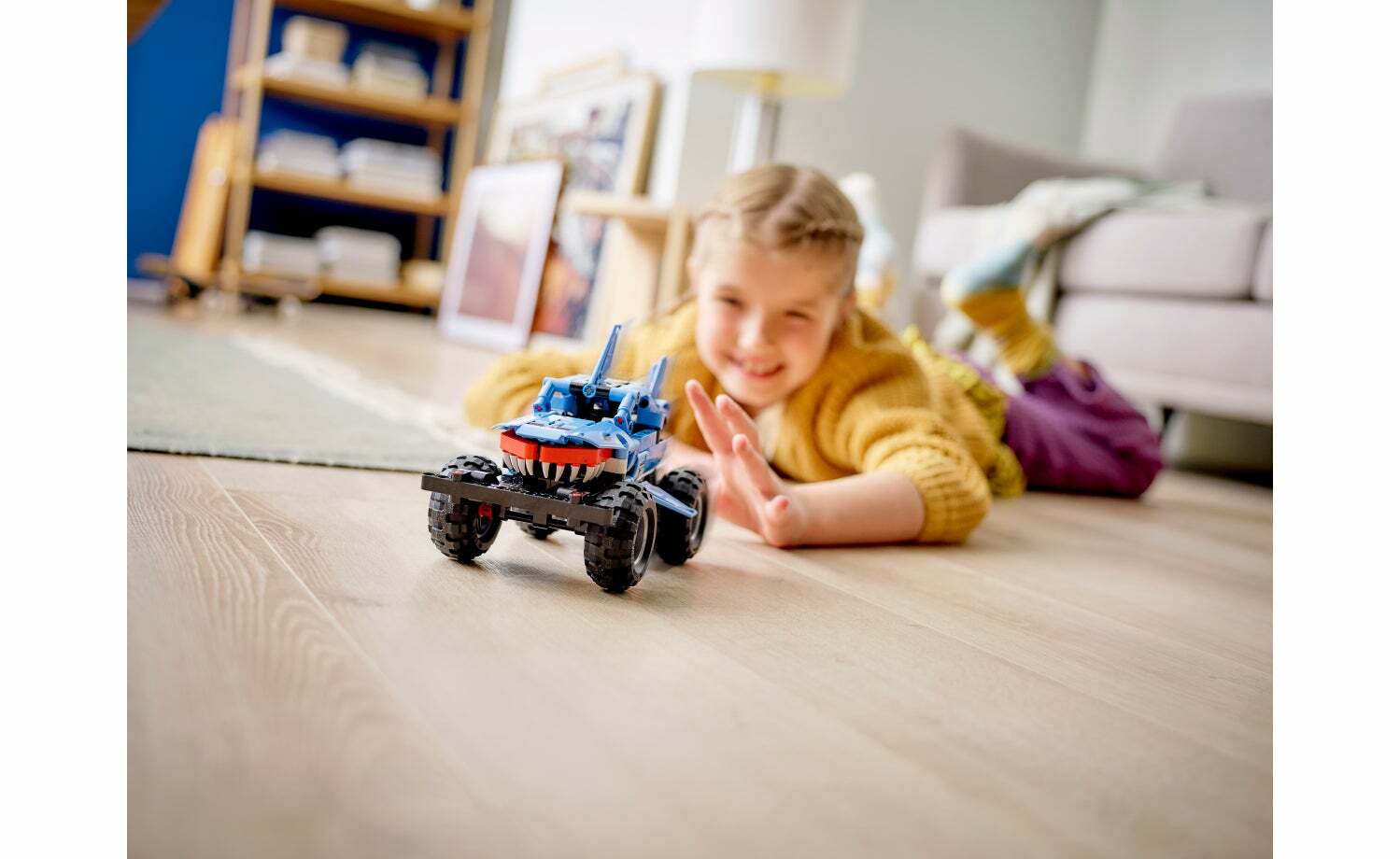 想迎接新挑戰時,這輛二合一玩具卡車可重新拼砌成拉斯克(lusca)低姿態賽車。這輛低姿態賽車靈感來自神話中的海怪,將鯊魚與烏賊結合成駭人的賽車,搭載迴力功能,帶來步調快速的遊戲。