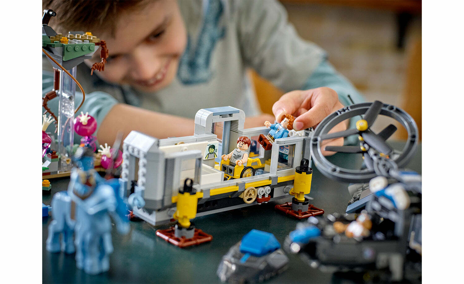 這款樂高® 阿凡達 Floating Mountains: Site 26 & RDA Samson(75573)拼砌玩具盒組中,有冒險等著 9 歲以上、熱愛《阿凡達》的玩家。此盒組包含 2 隻傑克蘇里人偶(納美人與人類型態)、3 隻其他人偶、1 個高冠厚甲馬(Direhorse/Pa’li)玩偶、未來風格的 SA-2 Samson 直升機、有行動連結站的 Site 26 貨櫃,此外還有 1 個有夜光零件的模型。