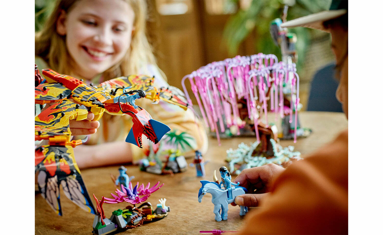 • 展示或遊玩-孩子與《阿凡達》粉絲可重現電影中獨具意義的場景、設計新點子,或打造動態擺設,呈現迅雷翼獸(Toruk)在靈魂之樹上方展開翼膜翅膀的場景