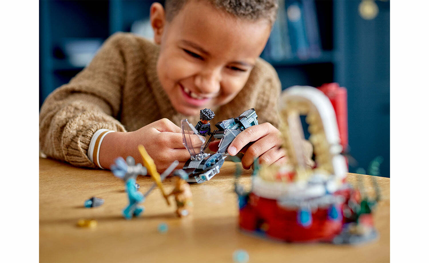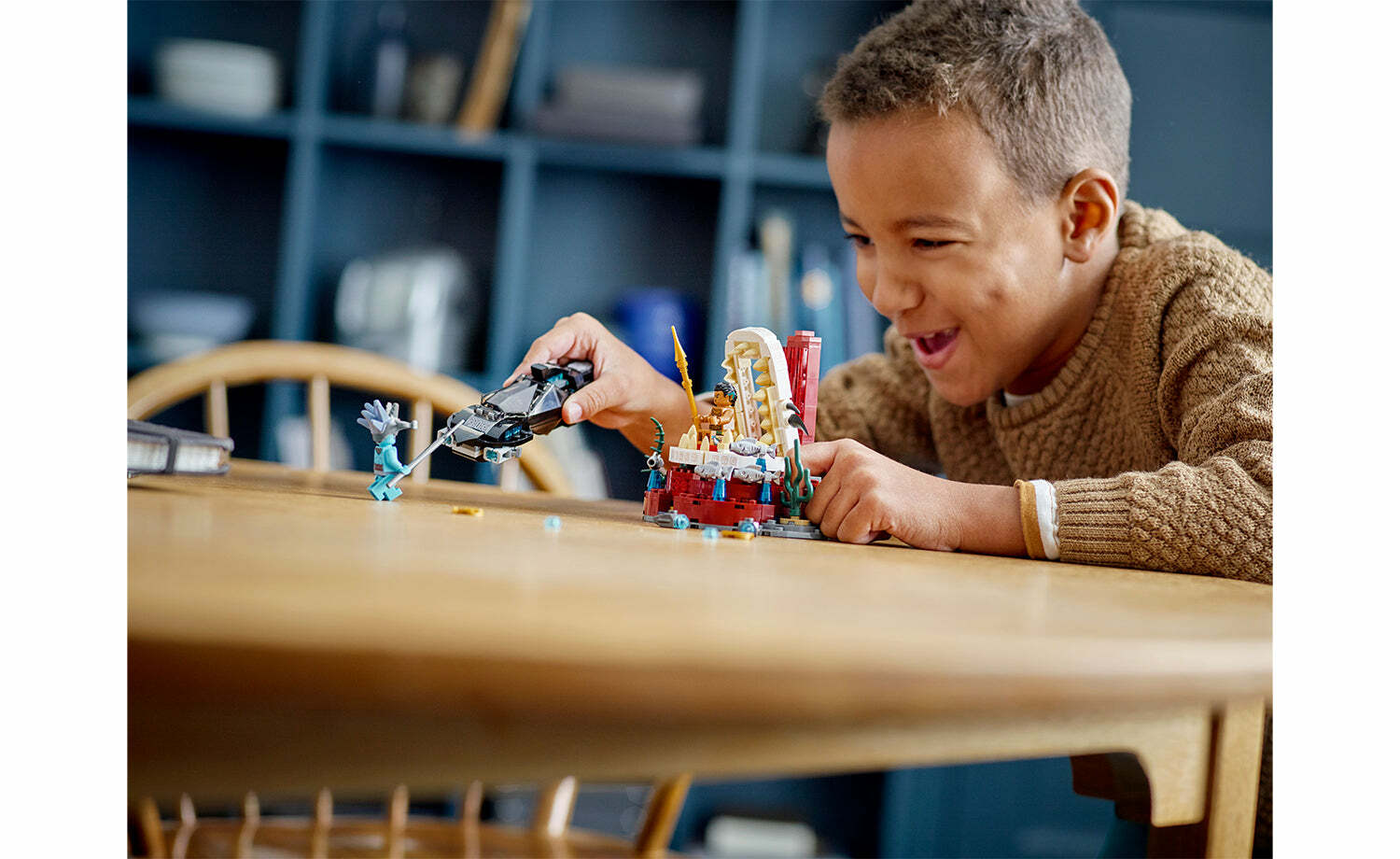 樂高®漫威納摩王的王座室 (76213) 套裝中,7 歲及以上的年輕超級英雄將進行富有想像力的水下動作。