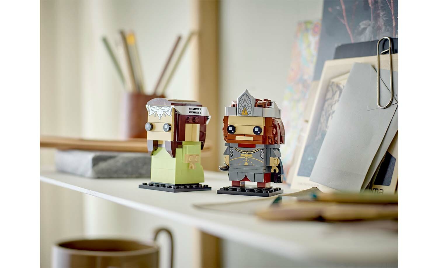 用這些值得收藏的 LEGO® BrickHeadz™ 玩偶(40632),激發《魔戒三部曲:王者再臨》中亞拉岡™ 與亞玟™ 婚禮場景的回憶。亞拉岡身穿國王服裝、戴著王冠,而亞玟則身穿積木組成的綠色婚紗、戴著頭冠。這款可拼砌與展示的盒組適合送給《魔戒™》粉絲、樂高拼砌者與 LEGO BrickHeadz 收藏家,當作平日、生日或佳節的迷人好禮。