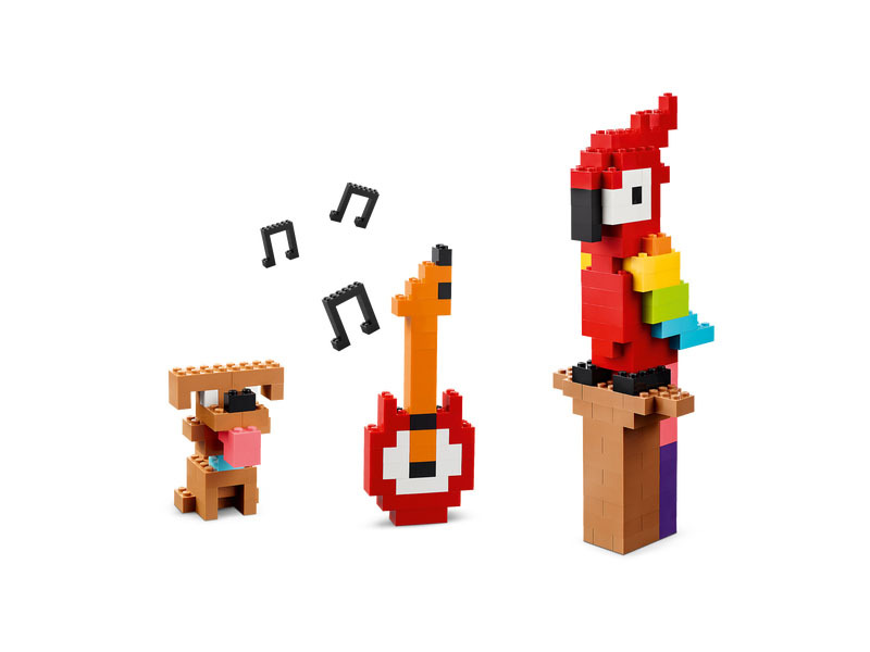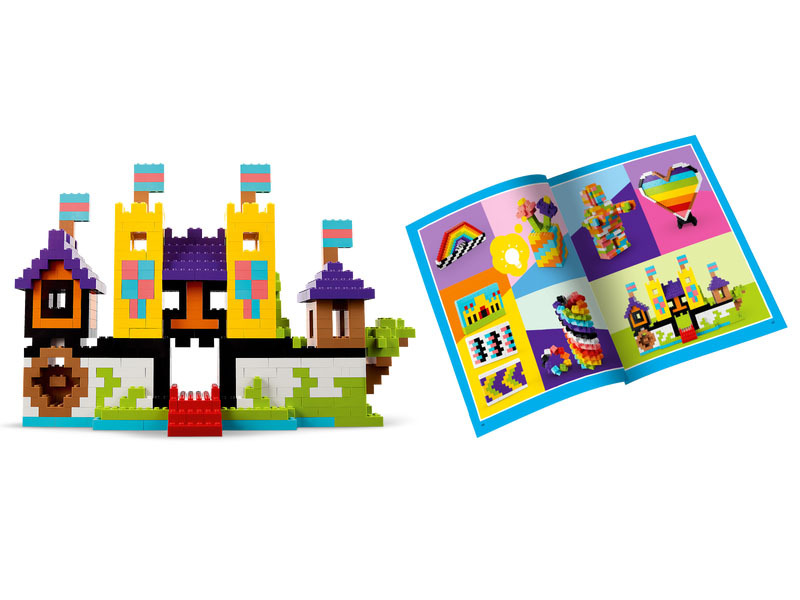 此盒組包含大量色彩鮮豔的樂高積木-尤其是最早的超人氣 2x4 積木!這款盒組內有拼砌趣味模型玩具的易懂紙本說明,包括汽車、地球儀、花朵、愛心、吉他、房屋、微笑表情符號、鸚鵡、狗狗與蘋果。此盒組著重激發自由不受限的創意遊戲。裡面甚至有 1 本雜誌,包含拼砌說明與給你家小小設計師的建議。LEGO Builder 應用程式中也可找到此盒組的數位版拼砌說明。