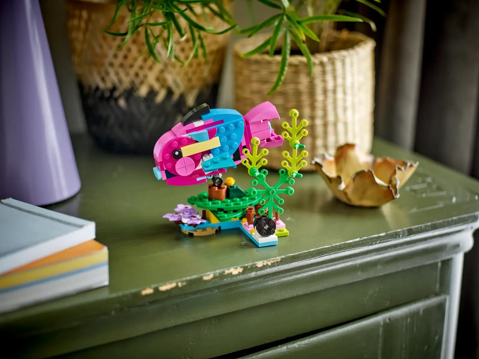 孩子可用這款美妙的樂高 3 合 1 盒組拼砌 3 種不同的異國動物玩具。他們可拼砌棲身在樹枝上、色彩鮮豔的鸚鵡、重新拼砌成在海底游動、愛玩的魚,或是製作腿可動的淘氣青蛙。