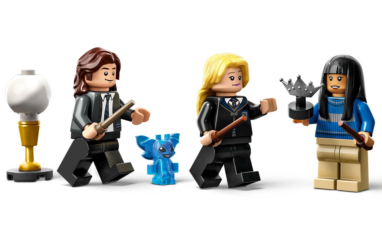 • 3 個雷文克勞™ 學生角色的人偶-張秋™、露娜羅古德™ 與麥可寇那此外還有 1 隻康爾瓦郡綠仙和魔杖