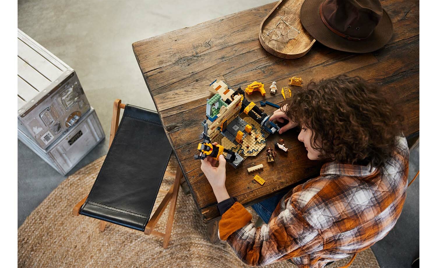 樂高印第安納瓊斯系列盒組讓懷舊的家長向他們的孩子介紹印第安納瓊斯的傳奇,以及他在該系列前三部電影中的冒險。他們可一起享受帶來成就感的拼砌體驗,接著用一系列汽車、飛機與神廟進行角色扮演行動。
