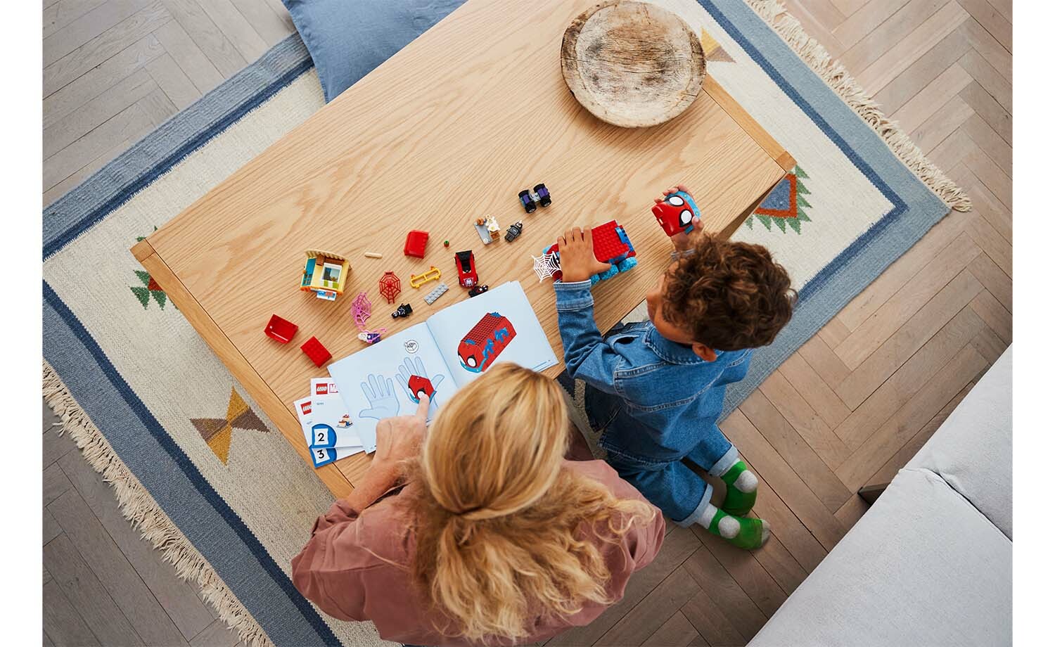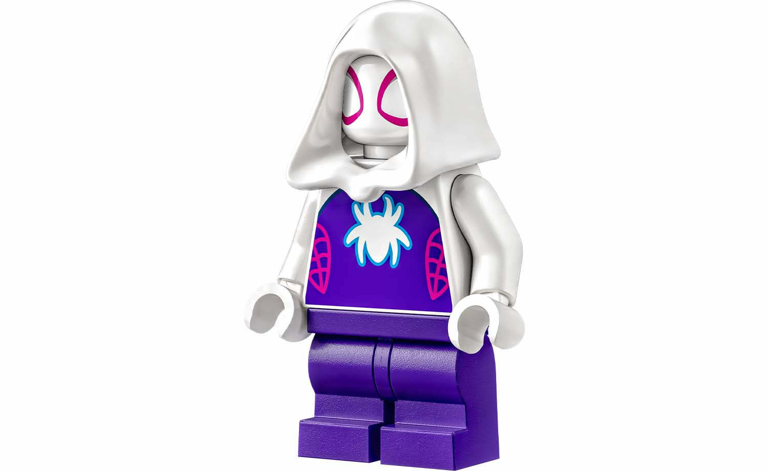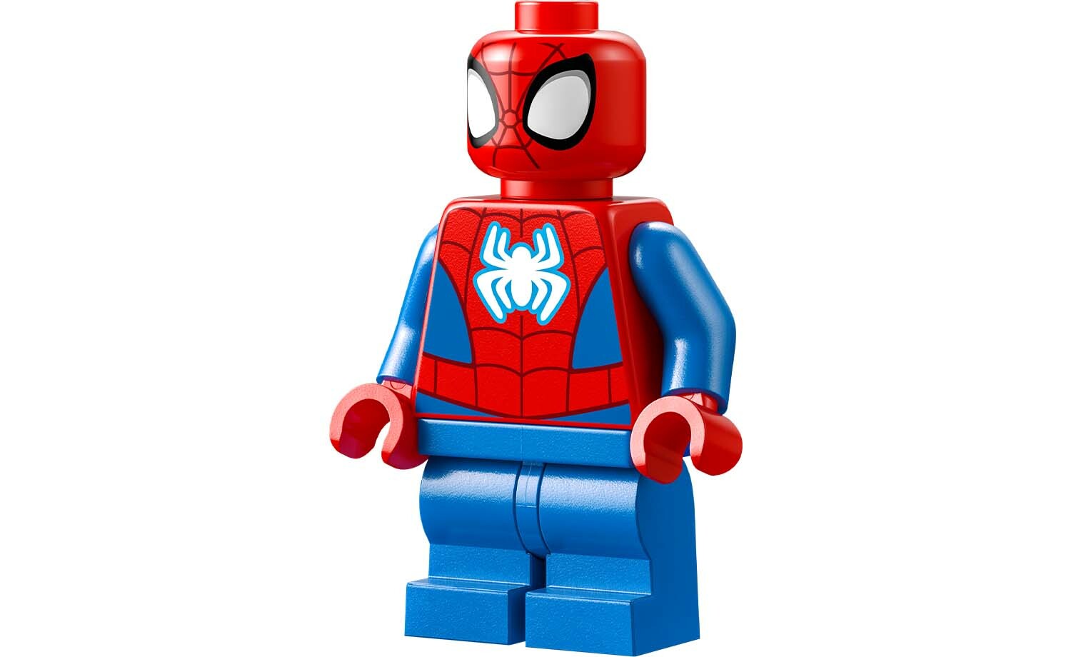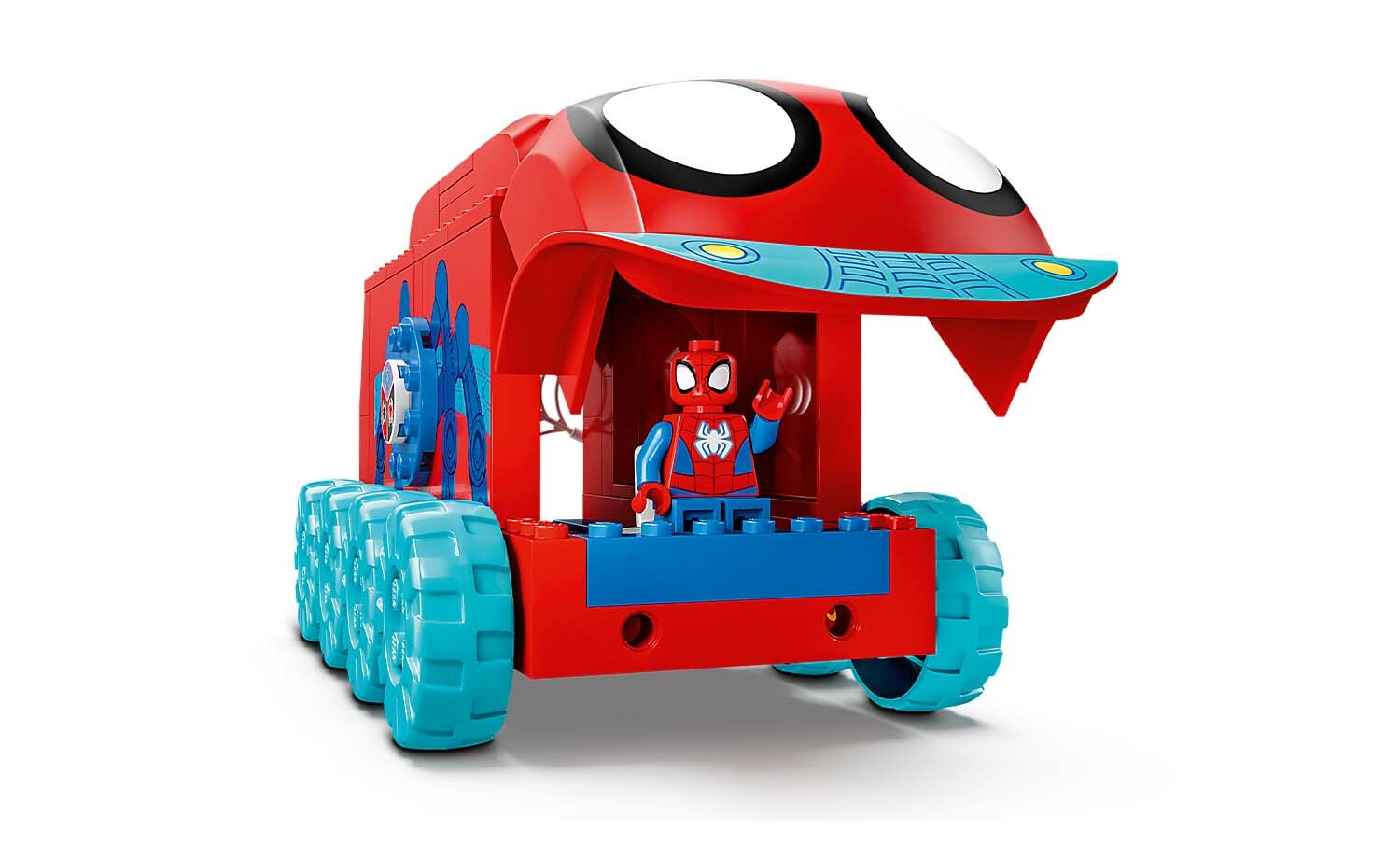 此盒組包含 5 隻人偶-蜘蛛人、惡靈蜘蛛人、邁爾斯摩拉斯、黑豹與犀牛人-此外還有蜘蛛人與小隊的拼砌式總部。行動總部有可打開的駕駛艙與後門,敞篷車與沙灘車可從後門進出。犀牛人配有 1 把可發射雞蛋的槍。他的目標是雜貨店,裡面有許多食物大戰的「彈藥」。配件包括蜘蛛網與街道設施,而由 2 個積木組成的底盤和圖片故事說明則給孩子組裝盒組的自信。如要增加數位樂趣,LEGO Builder 應用程式有縮放與旋轉工具,讓孩子一邊拼砌,一邊預覽模型。