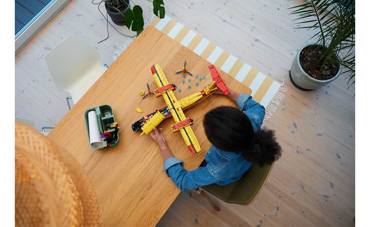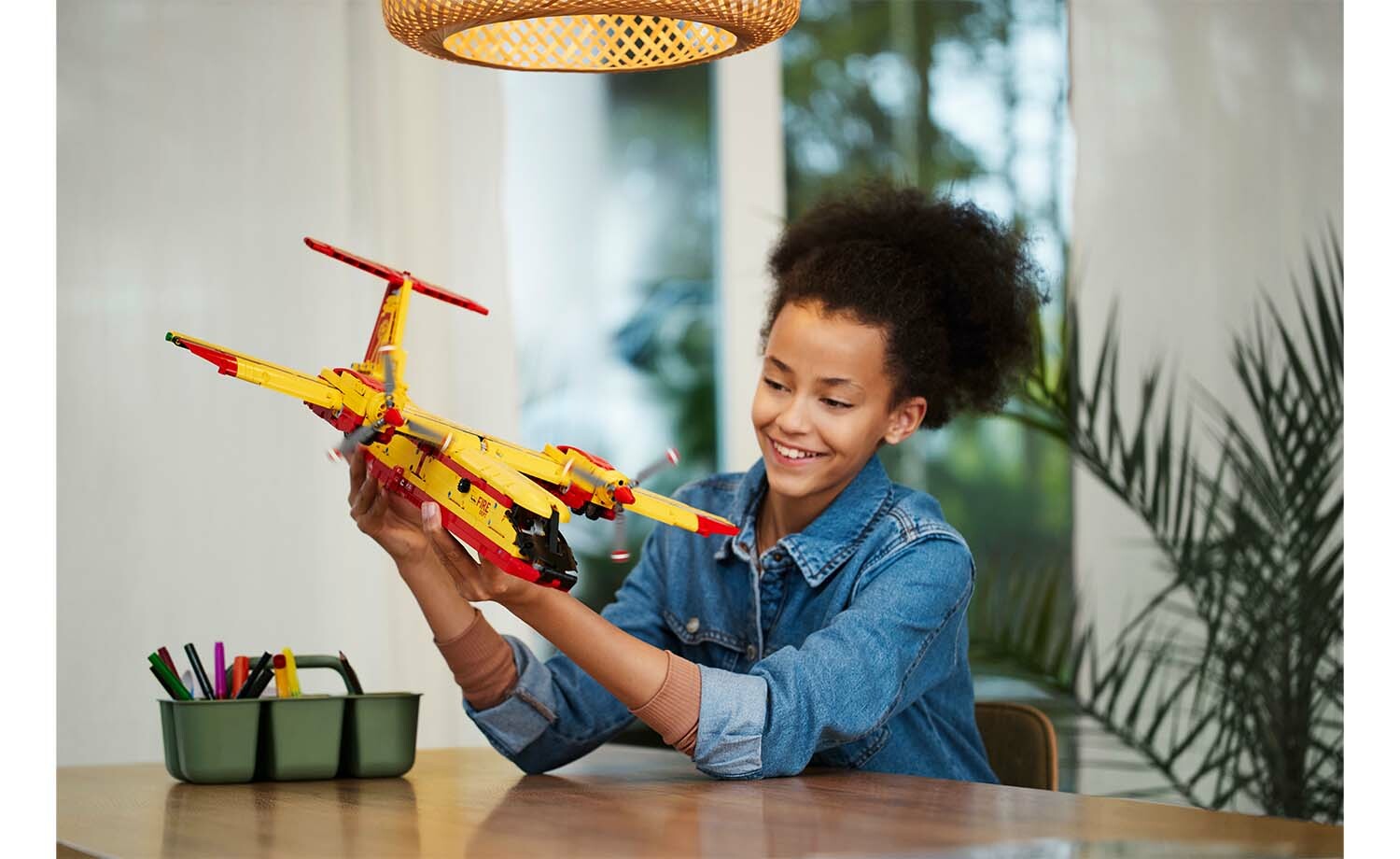 此盒組適合孩子與大人一起享受。孩子讓螺旋槳轉動、升起與放下起落架,以及看機尾襟翼移動。孩子一定會喜歡打開艙口,丟下樂高「水」零件,瞭解消防飛機如何滅火。