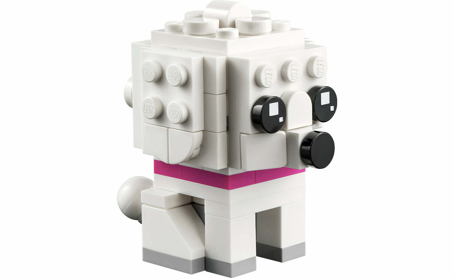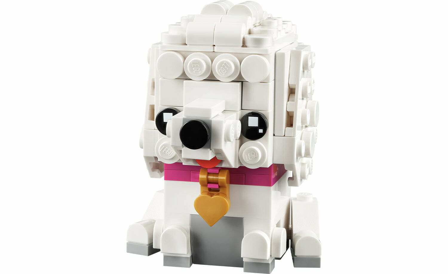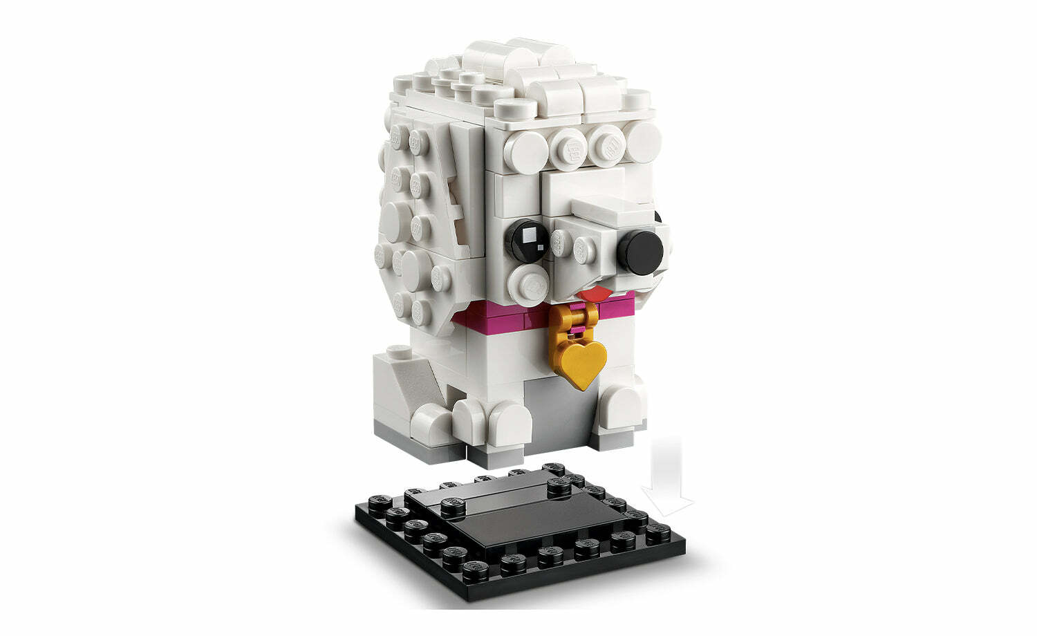 用這款 LEGO® BrickHeadz™ 貴賓狗(40546)拼砌與展示模型讓熱愛狗狗的孩子開心不已。狗狗戴著粉紅項圈,貴賓狗爸爸/媽媽戴著心形吊牌,顯得更加可愛。牠們坐在堅固底板上,旁邊是迷人的舊式路燈。此拼砌式寵物盒組是適合 8 歲以上孩子、BrickHeadz 收藏家與愛狗人士的絕佳贈禮。